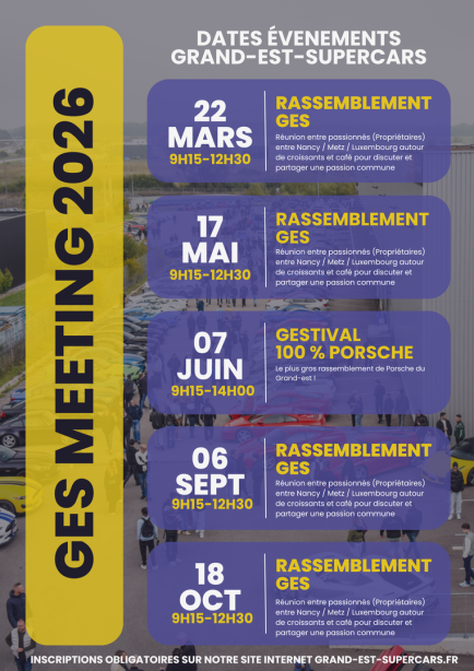 - DIMANCHE 07 JUIN 2026 : GEStival PORSCHE (le plus grand rassemblement de Porsche du Grand-Est)